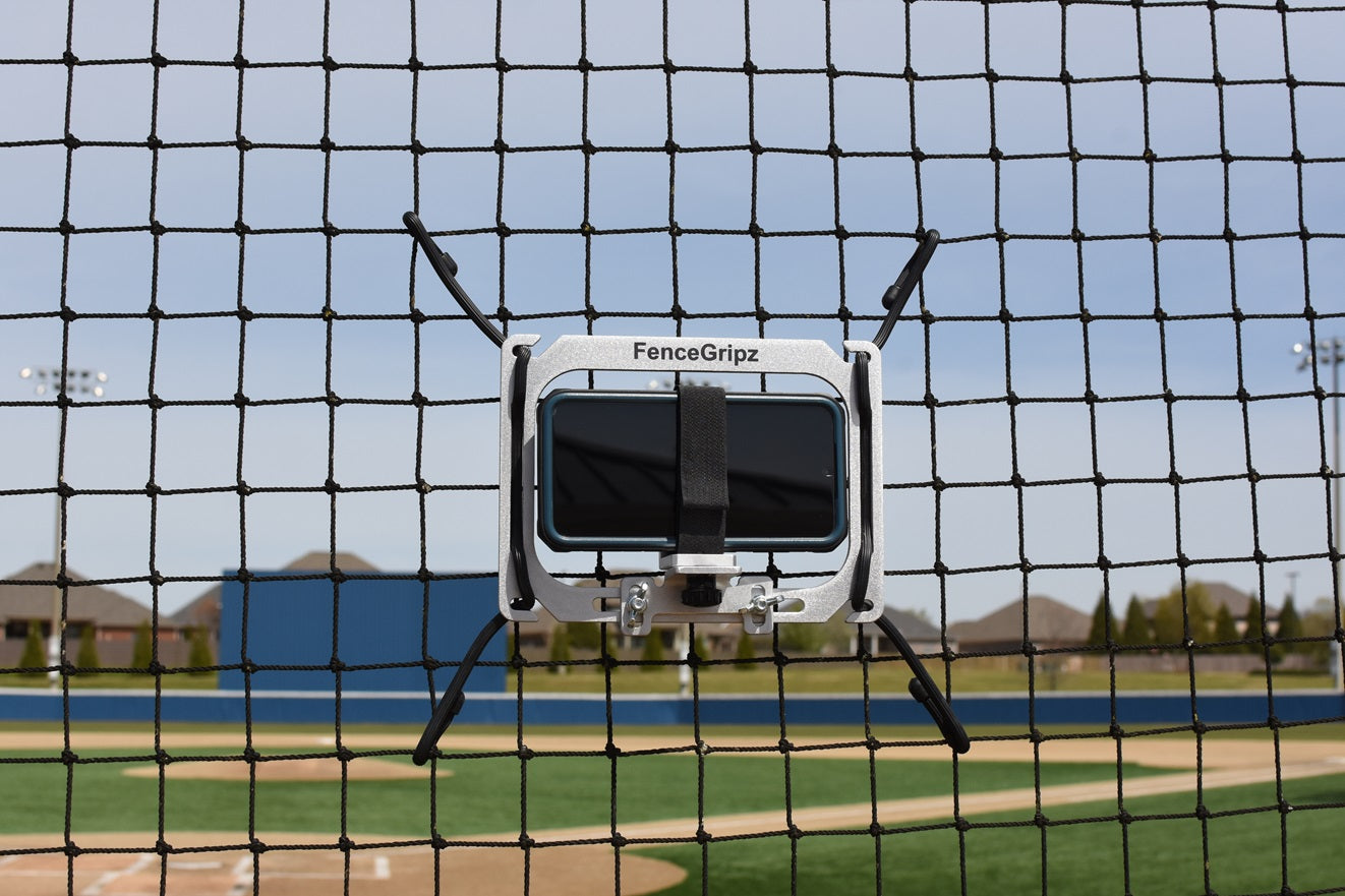 The new FenceGripz developed phone adapter is made of thick metal and has a foam pad for added protection. The included velcro strap makes sure you phone is secure in the event a ball hits the fence near the mount. It will accommodate all phones and cases.